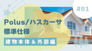 ポラス・ハスカーサのご紹介 ハスカーサの標準仕様① 建物本体&外部編 建築工法、天井高、基礎、保証/アフターメンテナンス、対応可能な補助金事業、屋根材、外壁、玄関ドア/サッシ(窓)、断熱/耐震など、ポラス/ハスカーサの標準仕様を詳しく解説します。 2025.08.07 ポラス・ハスカーサのご紹介設備
